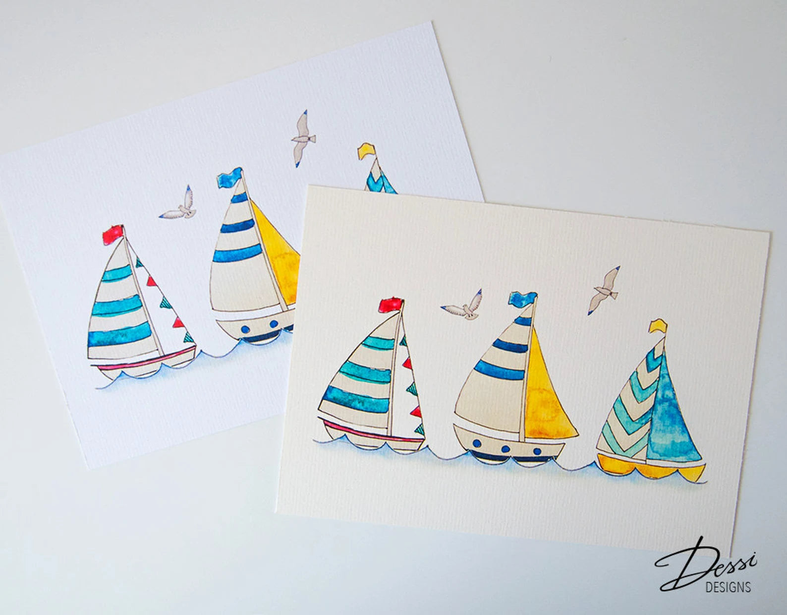 Watercolour Boats Wall Art Print 5'x 7'(13cm x 18cm )